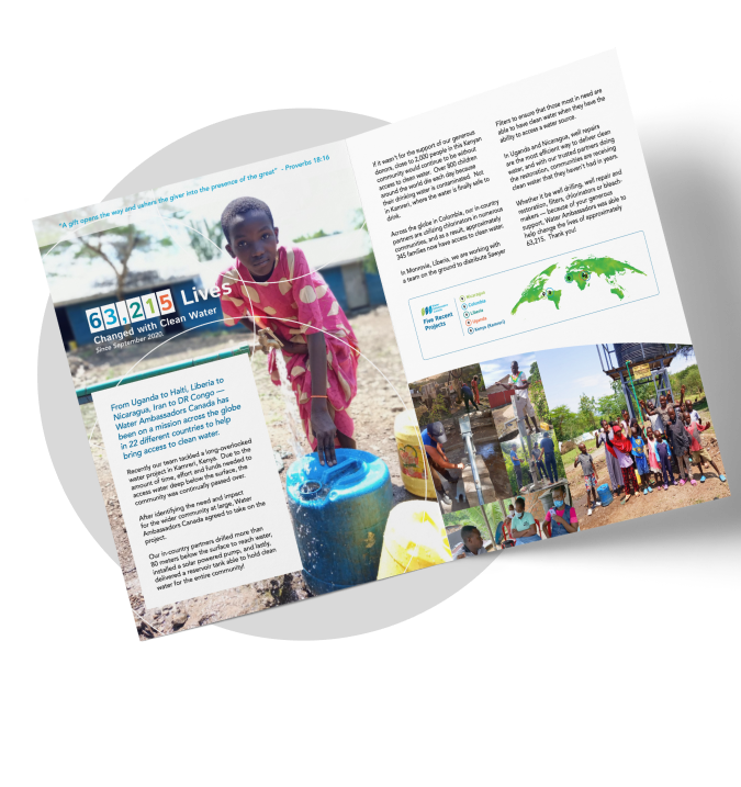 Water Ambassadors Canada’s newsletter and logo, spoke conventionally to an older demographic of faith-based followers. Our Brand Strategist devised a strategy to position the organization to point at a wider target audience.